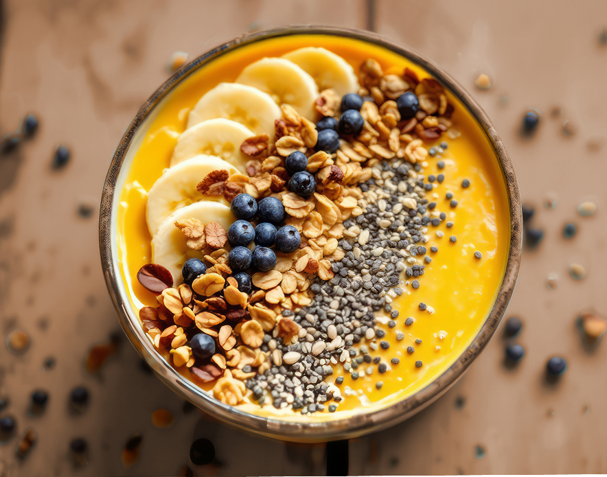 A creamy, brain-boosting bowl topped with crunchy toppings for added texture and nutrients.