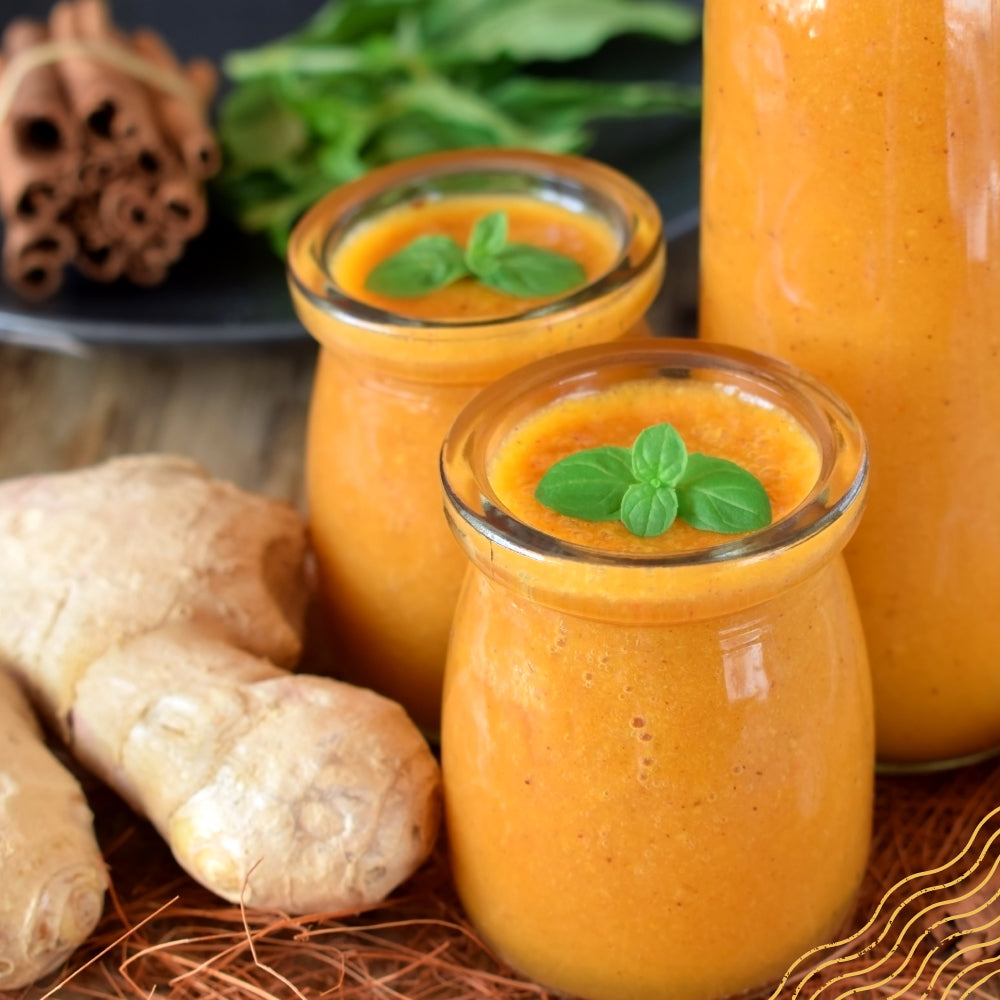 In ein Glas füllen und einen köstlich-würzigen und erfrischenden Smoothie genießen!