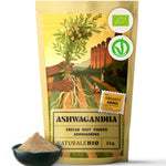 Organic Ashwagandha Powder. 100% Organic, Natural and Pure. Produced in India from Withania somnifera root. Helps Reduce Stress, Anxiety and Improve Sleep Quality.