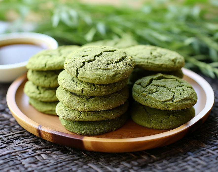 In a bowl, mix flour, ground sencha, baking soda, and salt.