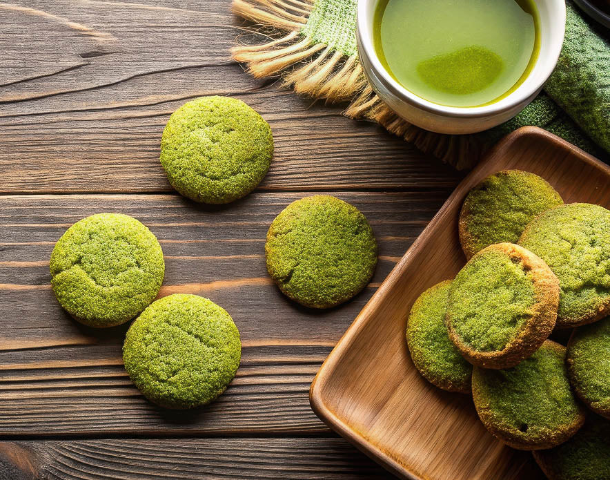 In a bowl, mix flour, Gyokuro powder, baking soda, and salt.
