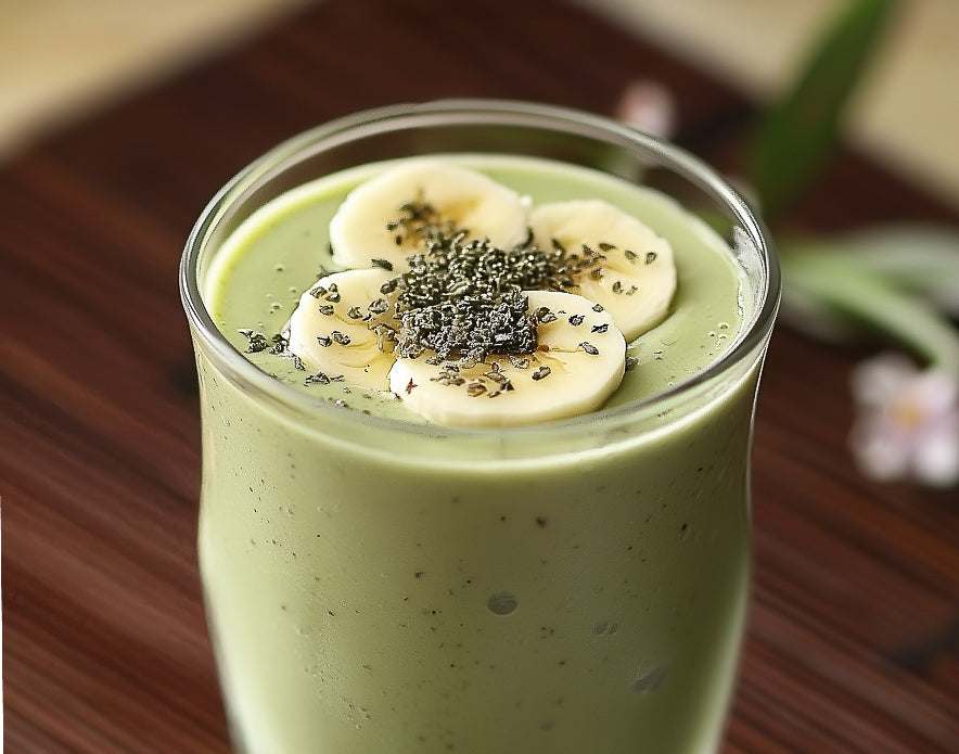 Add banana, yogurt, Gyokuro, honey, and almond milk to a blender.