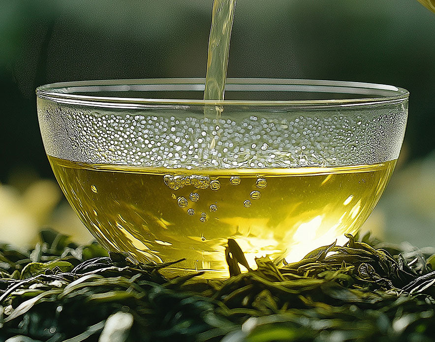 After infusion, the beverage takes on a pale dewy hue, a slightly cloudy yellow-green. Chlorophyll also plays another important role: it contributes to the perfect complexity of the tea’s flavor, characterized by vegetal notes and a uniquely delicate sweetness.