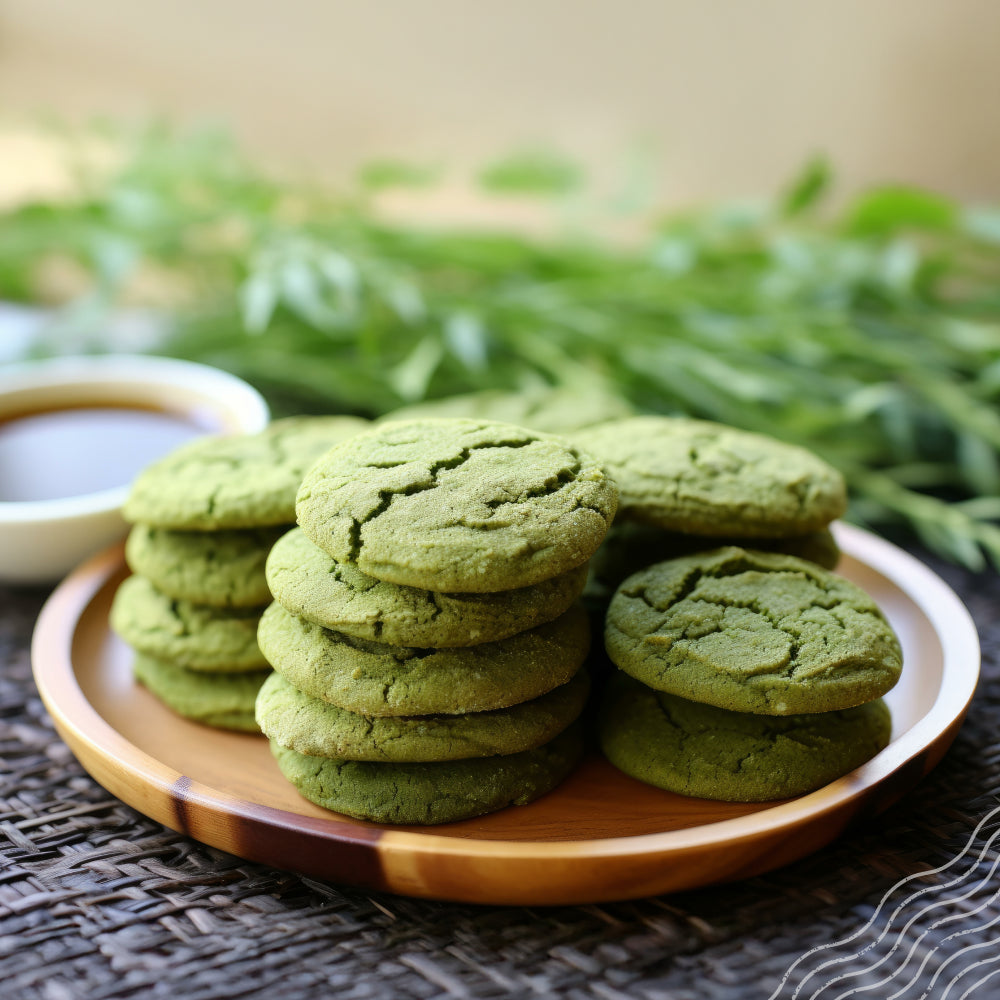 In a bowl, mix flour, ground sencha, baking soda, and salt.
