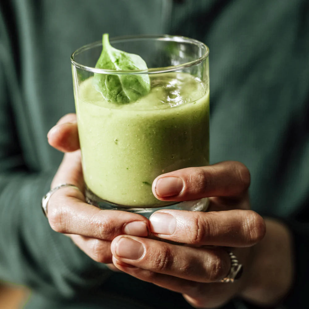 Add all the ingredients into a blender and mix until you reach a smooth and creamy consistency. Pour into a glass and enjoy!