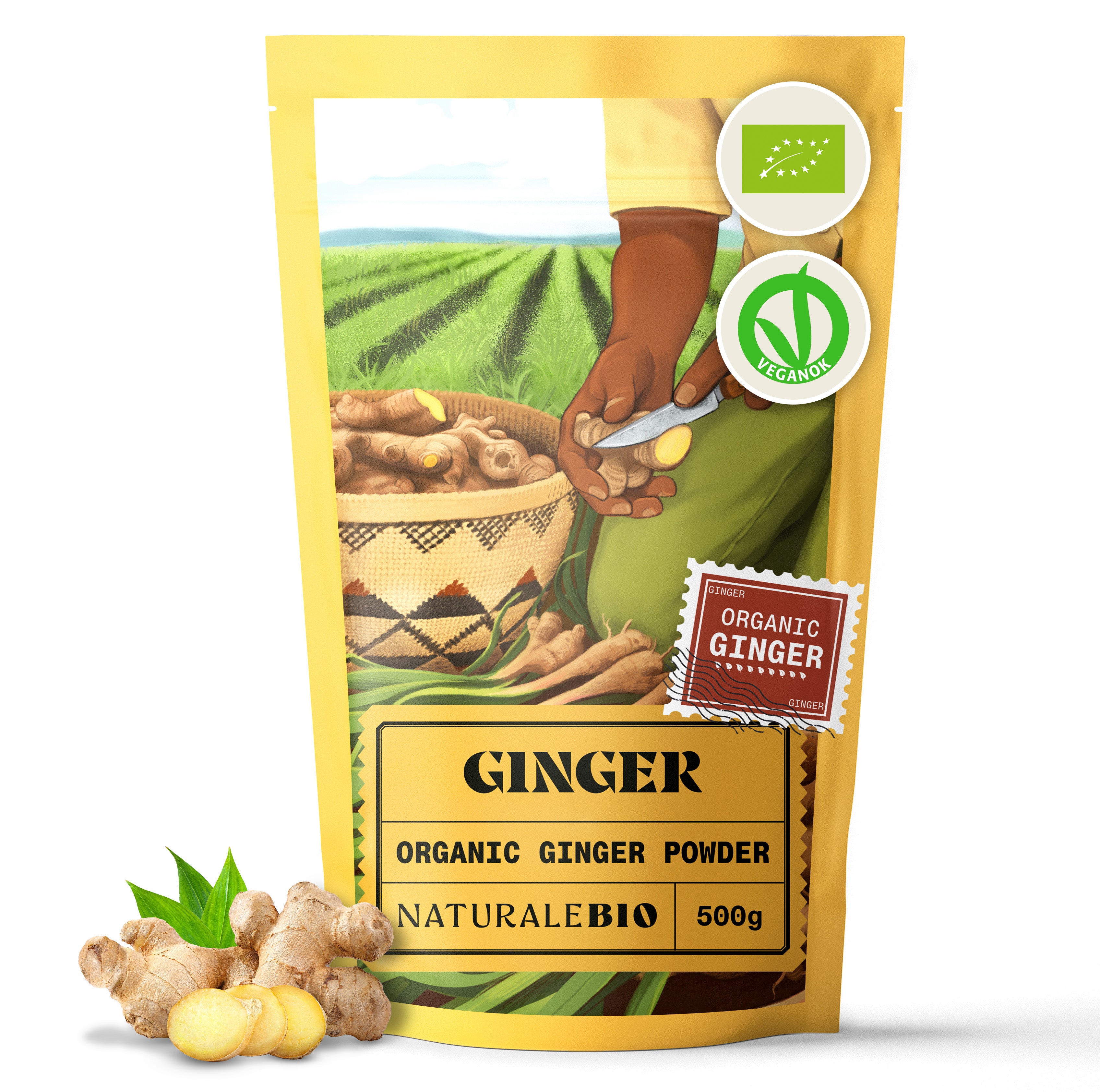 100% Pure Organic Ginger Powder – Finely ground dried ginger root with no additives or fillers. Sourced sustainably from Peru for unmatched freshness and quality.
