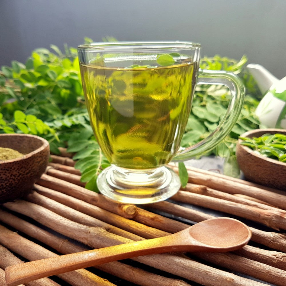 Bring the water to the boil, then remove from the heat. Add the moringa leaf powder and chopped ginger and dissolve in water. Cover and let rest for 4-5 minutes, then filter everything and remove the ginger. Add honey and lime juice and mix well, finally, a few ice cubes, relax and enjoy your tea!
